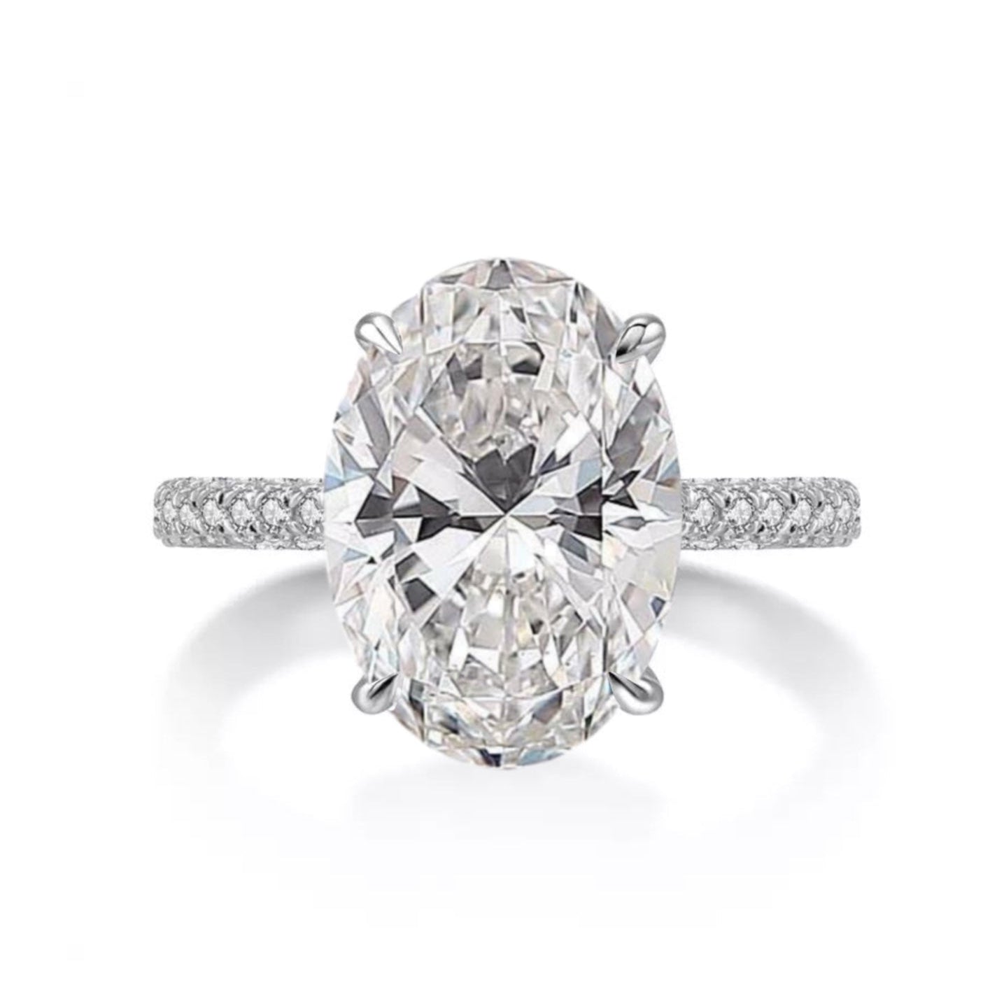 6.0ct Oval Cut Moissanite Three Row Pavè Engagement Ring