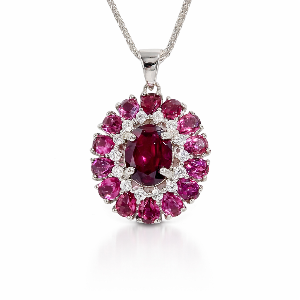 Rhodolite Garnet Sterling Silver Oval Necklace