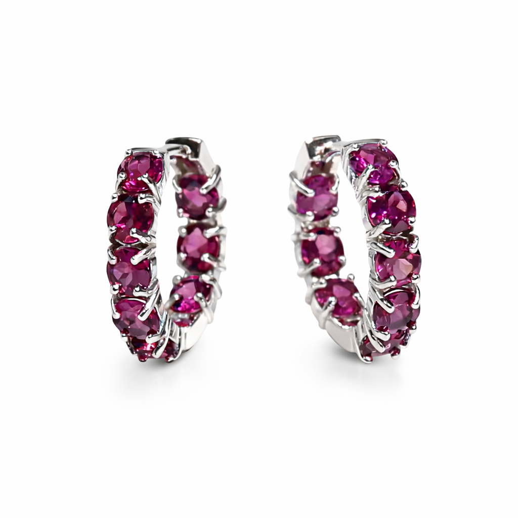 5.3ctw Rhodolite Garnet Sterling Silver Hoop Earrings
