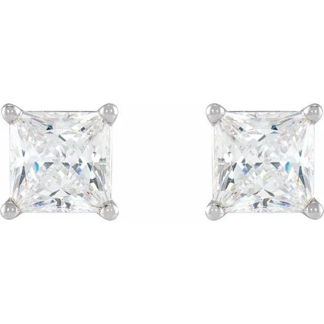 1.0ctw Princess Cut Lab Diamond 14K Solid Gold Stud Earrings