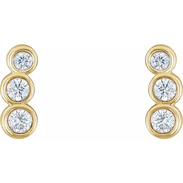 ⅛CTW Three Stone Round Cut Bezel Set Natural Diamond 14K Solid Gold Stud Earrings