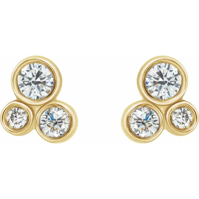 ⅛CTW Three Stone Round Cut Lab Diamond 14K Solid Gold Stud Earrings