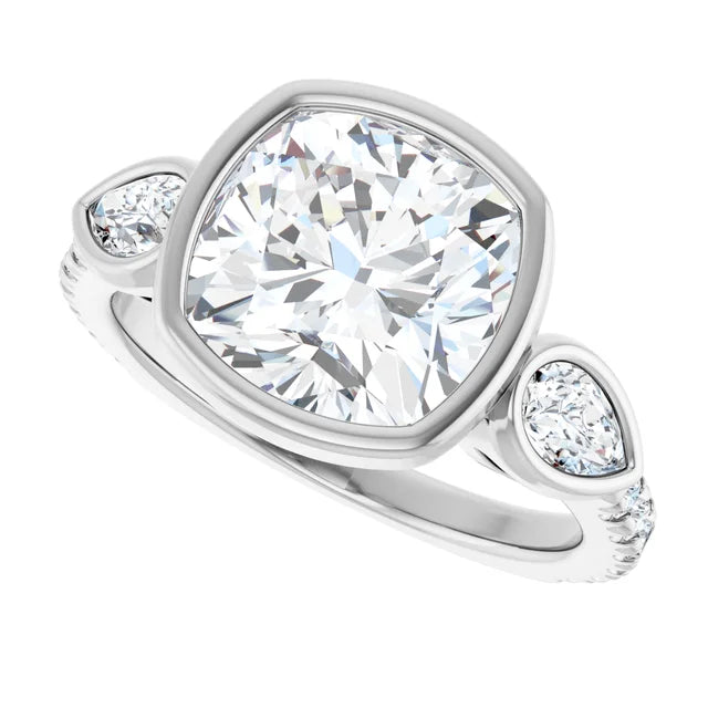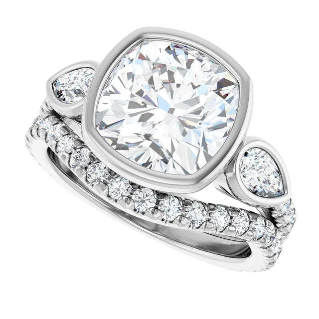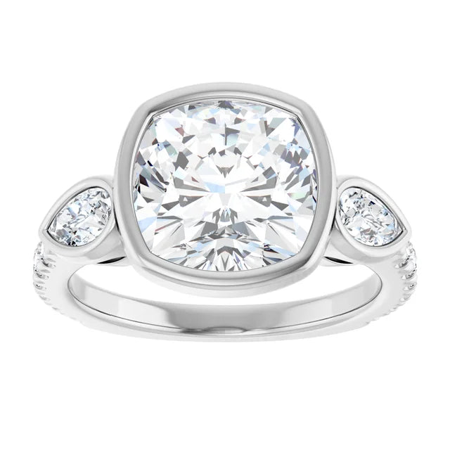 1.0ct Pear Cut Moissanite Bezel Set Engagement Ring