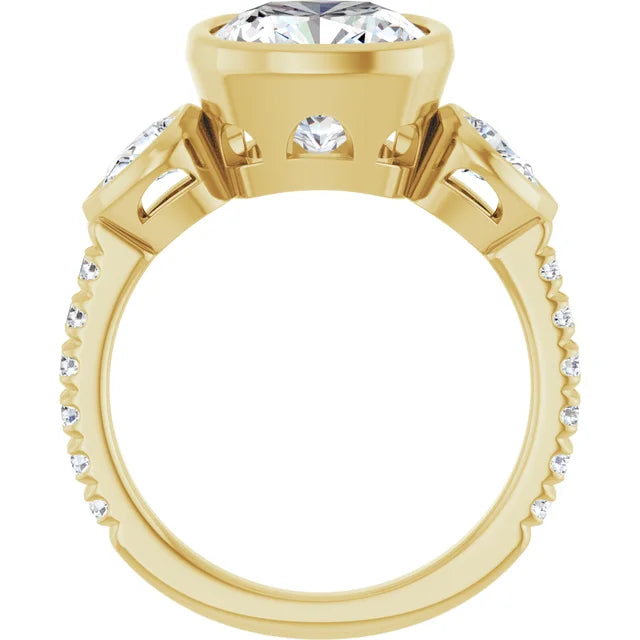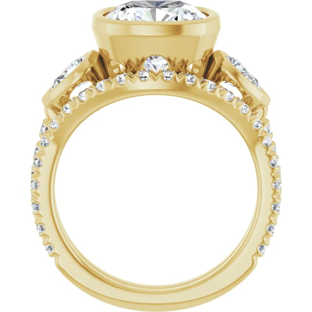 4 ⅜CTW Three Stone Lab Diamond Emerald Cut Bezel Set Engagement Ring