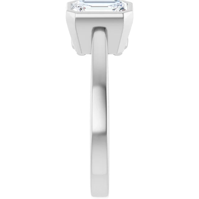 Emerald Cut Moissanite Bezel Set Double Band Ring