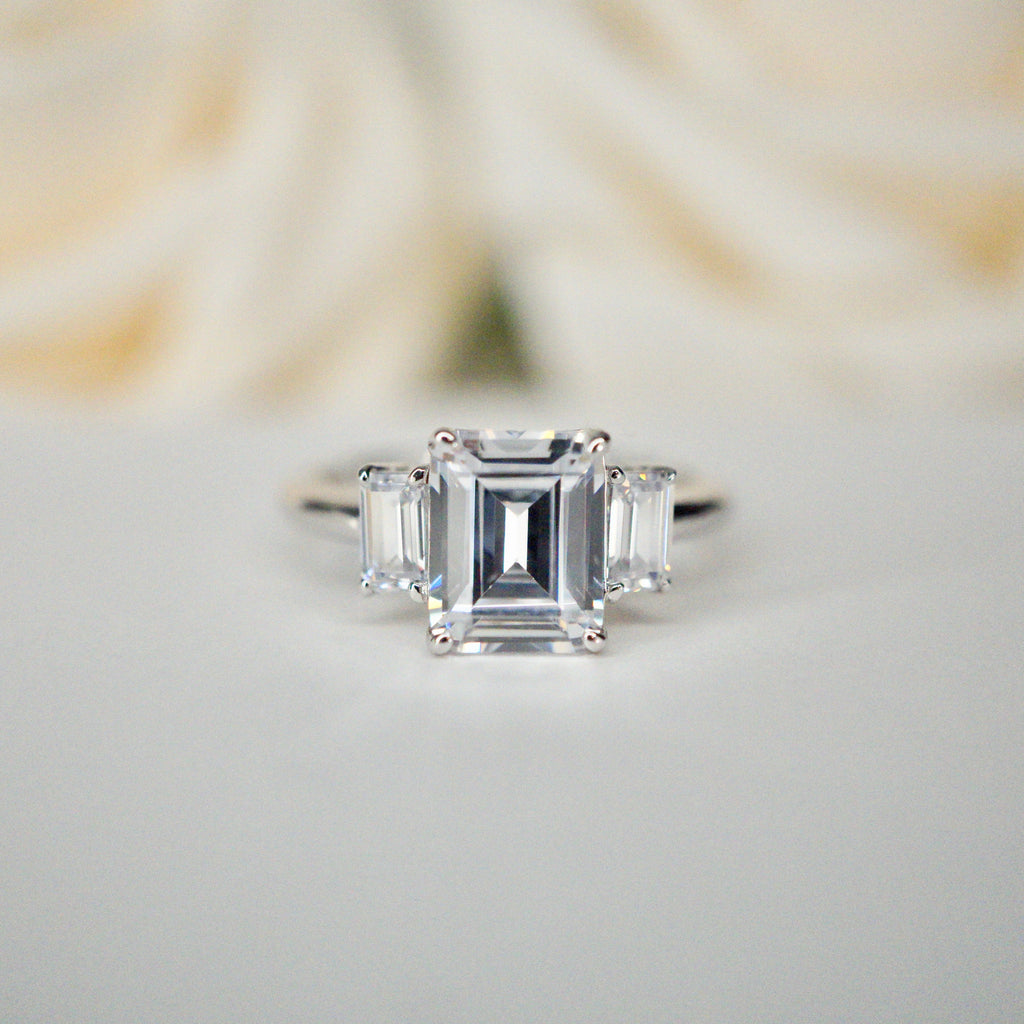 1 ⅓ctw Emerald Cut Lab Diamond Three Stone Engagement Ring