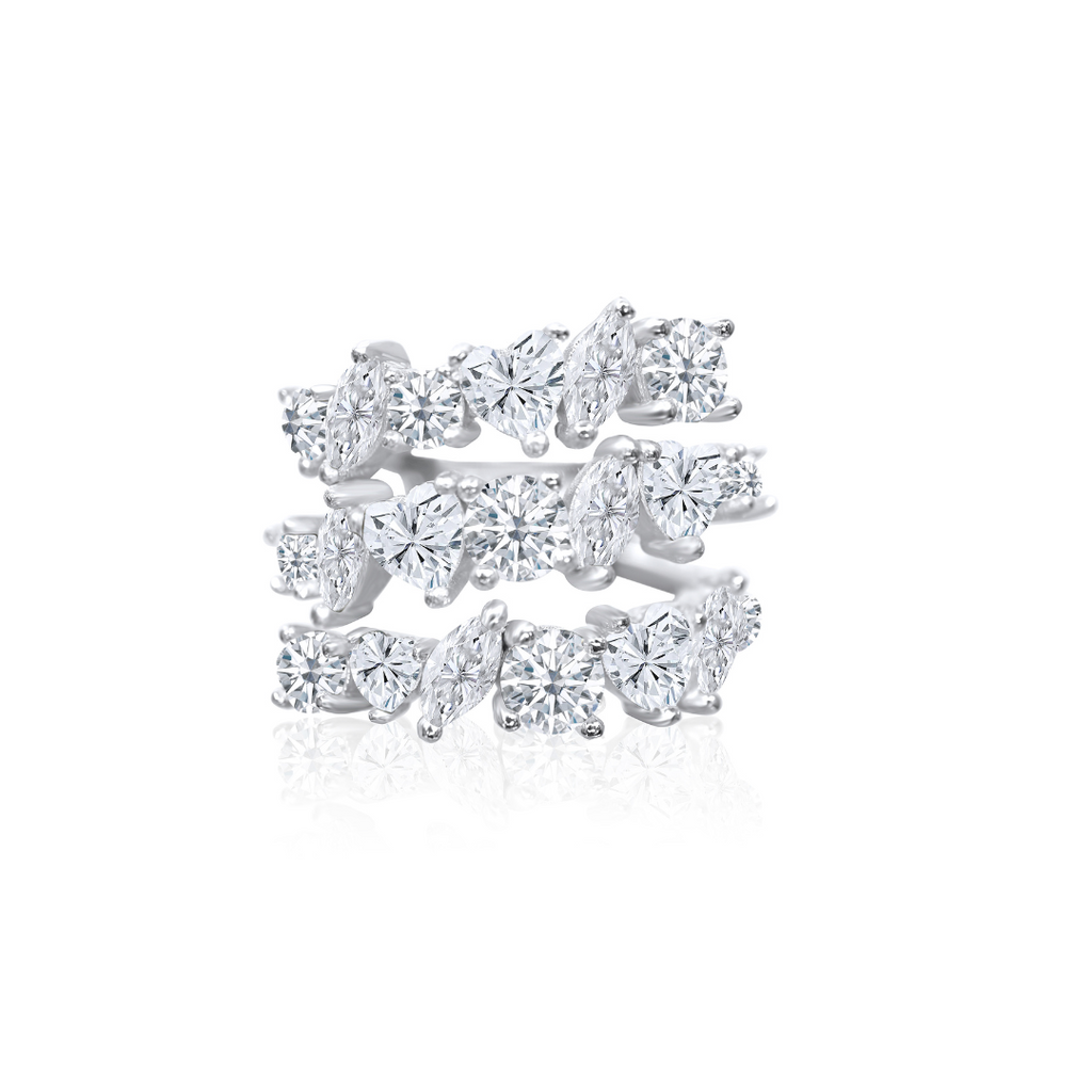 Marquise Cut Moissanite and Lab Diamond Engagement Ring