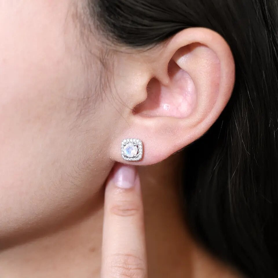 Moonstone Round Cut 925 Sterling Silver Stud Earrings